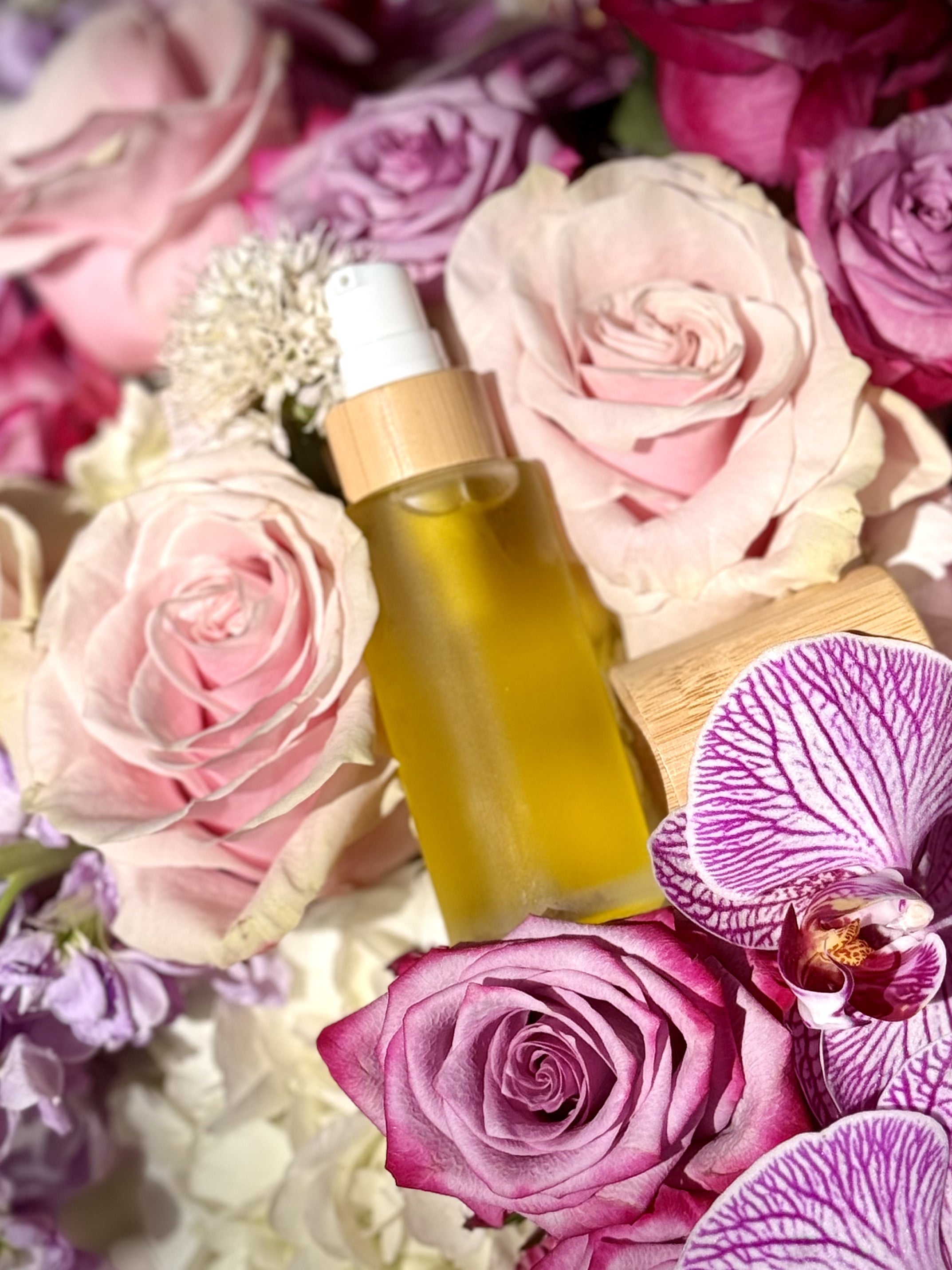 The Base: Sweet almond, jojoba, and apricot kernel oils melt effortlessly into skin, delivering deep hydration without heaviness. Cold-pressed rosehip seed and argan oils - nature's most coveted skin elixirs - infuse antioxidants and essential fatty acids that visibly soften, smooth, and restore radiance. Vitamin E seals in moisture while protecting against environmental stress.